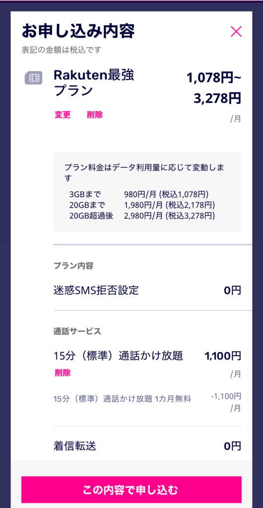 • プランは「Rakuten最強プラン」の1種類