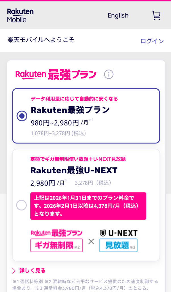 プランは「Rakuten最強プラン」の1種類